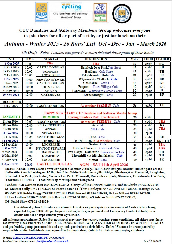 Our SR Rides Autumn - Winter 2025 - 26 Contact Tom Hanley or Ride Leader
